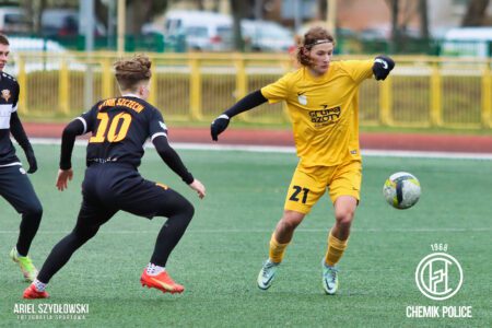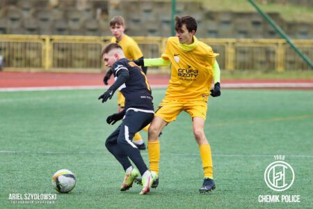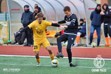 W drużynie Hutnika doszło tej zimy do istnej rewolucji kadrowej. Z zespołu, który występował w rundzie jesiennej pozostało tylko kilku zawodników. Pozostałą część kadry w nowej rundzie będą stanowić młodzi piłkarze z grup młodzieżowych Hutnika. Pierwsze 20 minut zespół z Północy Szczecina grał bardzo odważnie i dwukrotnie zagroził bramce Adriana Piekutowskiego. Jednak z minuty na minutę rosła przewaga Chemików i już w 20 minucie było 1:0 dla Chemika. W 29 minucie meczu Wiktor Kurzawa podwyższył na 2:0 dla Chemika. Do końca pierwszej części spotkania bramki zdobyli jeszcze Szala i Kowalczyk. Dla Daniela mogło ty być drugie trafienie w tym meczu. Jednak w 22 minucie meczu nasz zawodnik nie wykorzystał jedenastki za faul podyktowany na Dąbrowskim. Na drugą część spotkania wyszła już zupełnie inna jedenastka Chemika. Złożona głównie z naszej młodzieży występującej w naszej Piłkarskiej Akademii. Młodzi piłkarze Chemika zdobyli jeszcze trzy bramki. Szczególnie ładne trafienie zaliczył zdobywca 7 bramki Jakub Dolak, który pięknym strzałem z około 25 metrów trafił prosto w okienko bramki Hutnika. Hutnicy zdobyli bramkę honorową w ostatniej minucie spotkania po rzucie karnym. Następny mecz kontrolny Chemicy rozegrają w następną sobotę. Zmierzą się w Policach z Białymi Sądów.