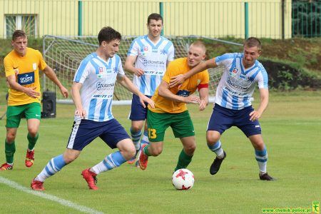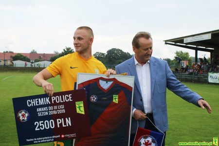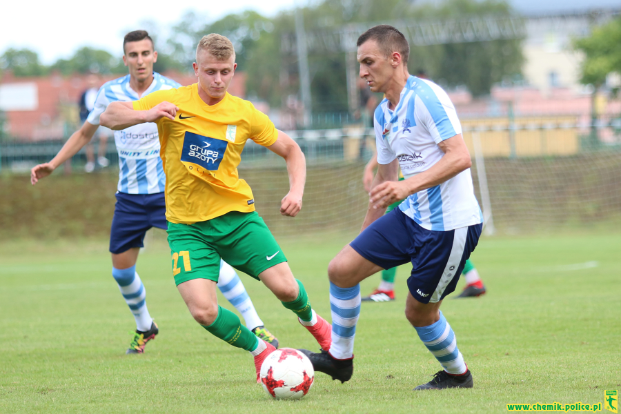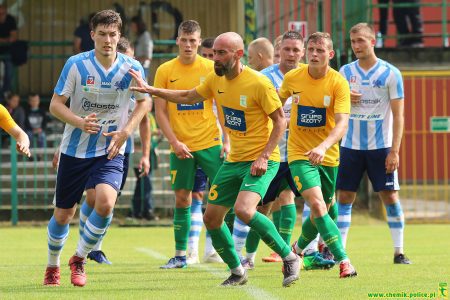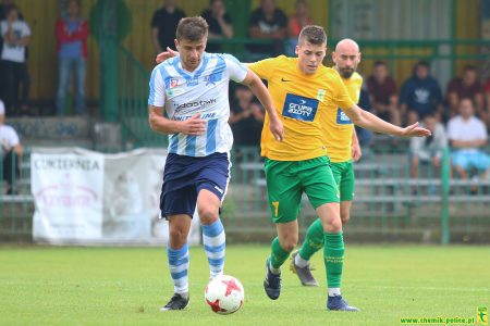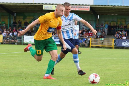 Na inaugurację rozgrywek piłkarskiej III ligi w niedzielne popołudnie Chemicy podejmowali na własnym boisku Świt Skolwin. Po emocjonującym pojedynku, który zgromadził liczną publiczność na stadionie przy ul. Siedleckiej Chemicy przegrali z rywalami 0:2. Pierwsza bramka padła w 22 minucie spotkania. Brzeziański zagrał dokładną piłkę do Nagórskiego i ten nie miał najmniejszych problemów z pokonaniem Oskara Rechtziegela. W 40 minucie żółtozieloni mogli doprowadzić do remisu. Na strzał z około 25 metra zdecydował się Mateusz Kowalczyk. Niestety piłka po jego uderzeniu minimalnie przeleciała obok bramki Świtu. Dwie minuty później po rzucie wolnym okazję miał z kolei Szymon Kapelusz, tym razem piłka przeszła tuż obok słupka. Po przerwie w 51 minucie meczu gości zdobyli drugą bramkę, a jej autorem był były zawodnik Chemika Paweł Krawiec. Wynik do końca meczu nie uległ już zmianie. Mimo, że oba zespoły stworzyły sobie jeszcze po kilka okazji do zdobycia bramki. Po stronie Chemika swoje szanse mieli Oskar Klimkowicz i Szymon Kapelusz. W następnej kolejce policzanie zagrają na wyjeździe z Unią Janikowo. Przed samym meczem nasz Klub za awans do III ligi został uhonorowany pamiątkową koszulką i bonem zakupowym przez Prezesa ZZPN Pana Jana Bednarka.