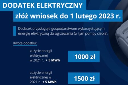 Aby uzyskać dodatek elektryczny w podwyższonej kwocie, do wniosku należy dołączyć rozliczenie z przedsiębiorstwem energetycznym, potwierdzające zużycie energii elektrycznej w 2021 r. przekraczające 5 MWh. Kolejnym warunkiem koniecznym do otrzymania dodatku elektrycznego jest uzyskanie wpisu lub zgłoszenie źródła ogrzewania do centralnej ewidencji emisyjności budynków (CEEB).