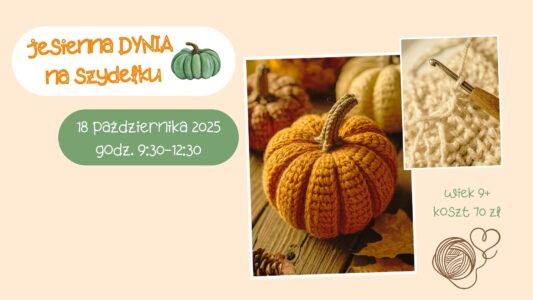 Zapraszamy na jesienne warsztaty szydełkowania! Pomarańczowy symbol tej pory roku – urocza dynia – już czeka, byście spróbowali wykonać ją z mięciutkiej włóczki, a następnie zabrali ze sobą do domu. Jeśli więc macie zapał do pracy, a jednocześnie chcecie spędzić twórczy czas w przyjaznej atmosferze, przyjdźcie na nasze spotkanie!