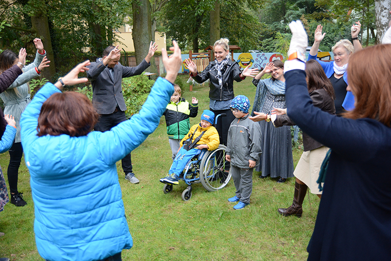 Przedszkolakom wraz z wychowawczyniami ze Specjalnego Ośrodka Szkolno-Wychowawczego nr 1 dla Dzieci Niepełnosprawnych Ruchowo im. M. Grzegorzewskiej w Policach towarzyszyli wychowankowie Młodzieżowego Ośrodka Wychowawczego w Trzebieży oraz Dyrektor MOW Marcin Głuszyk, którzy razem z pracownikami poradni tworzyli to miejsce.