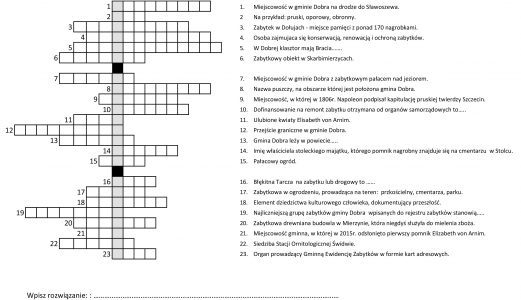 1. Niniejszy regulamin (dalej: „Regulamin”) określa ogólne warunki uczestnictwa w Konkursie polegającym na rozwiązaniu krzyżówki publikowanej na stronie internetowej Urzędu Gminy Dobra: www.dobraszczecinska.pl w celu promocji zabytków Gminy Dobra w ramach realizacji Programu Opieki nad Zabytkami na lata 2020-2023.