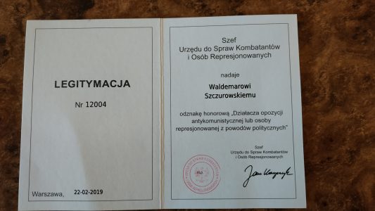 Ksiądz – opozycjonista Waldemar Szczurowski odznaczony