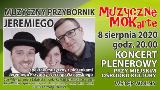 Świetni muzycy wraz z Karolem Wolskim z Formacji Chatlet w niebanalnych tekstach Jeremiego Przybory! Oto kolejna propozycja polickiego MOK-u z cyklu Muzyczne MOKarte – czyli plenerowy koncert na leżakach.