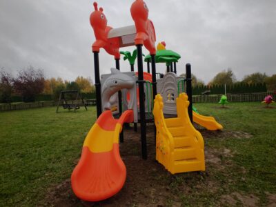 Nowo powstały plac zabaw został stworzony z myślą o najmłodszych mieszkańcach Domu – by zapewnić im bezpieczną przestrzeń do zabawy, rozwoju i radości na świeżym powietrzu.