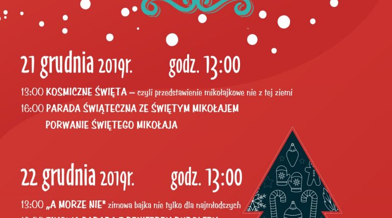 21 i 22 grudnia 2019 – będą to dni przepełnione atrakcjami w klimacie Świat Bożego Narodzenia. Występy wokalne, teatralne, happeningi, pokazy, wszystko po to, by poczuć magię Świąt.
