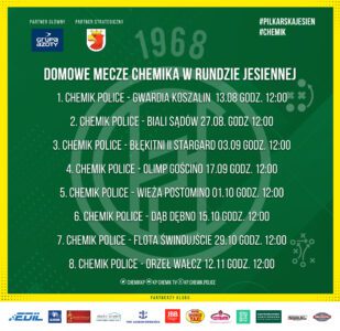 Klub Piłkarski Chemik Police pragnie serdecznie zaprosić wszystkich partnerów i przedstawicieli mediów na jesienne domowe mecze Chemika w Kipsta IV Lidze.