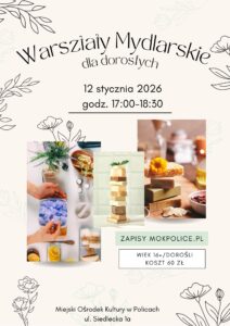 Marzysz, by zrobić coś tylko dla siebie, zrelaksować się i spędzić czas w kobiecym gronie? Warsztaty mydlarskie będą doskonałą okazją, by rozpocząć nową przygodę w duchu less waste i zgłębić tajniki naturalnej pielęgnacji skóry! Podczas warsztatów uczestnicy będą tworzyć całkowicie ekologiczne glicerynowe mydła, które nie tylko zachwycają wyglądem, ale przede wszystkim rozpieszczają skórę swoją delikatnością i naturalnym składem. Niepowtarzalne mydła powstaną na bazie gliceryny, która doskonale odżywia i regeneruje skórę, a także pomaga utrzymać właściwy poziom jej nawilżenia, chroniąc przed nadmierną utratą wody. Baza glicerynowa zostanie wzbogacona o naturalne oleje roślinne, kozie mleko, masło shea, a także barwniki i olejki eteryczne oraz ekologiczne dodatki, takie jak płatki kwiatów, skórki cytrusów czy aromatyczne ziarna kawy. W czasie warsztatów skomponujesz mydła idealnie dopasowane do Twoich potrzeb – zarówno pod kątem zapachu, jak i właściwości pielęgnacyjnych. A jednocześnie spędzisz odprężający czas, który pozwoli Ci się wyciszyć i naładować dobrą energią. A może zabierzesz ze sobą koleżankę lub sprawisz prezent komuś bliskiemu? Warsztaty mogą być doskonałym upominkiem dla babci na jej zbliżające się święto!