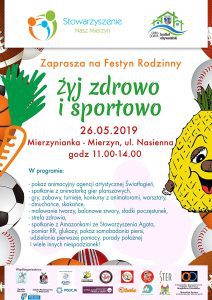 Stowarzyszenie na Rzecz Rozwoju Sołectwa Mierzyn „Nasz Mierzyn” wraz z partnerami serdecznie zaprasza 26.05.2019r (niedziela) w godzinach od 11.00 -14.00 na Festyn „Żyj zdrowo i sportowo” Teren Rekreacyjno – Sportowy Mierzynianka w MierzynieW programie przewidziano miedzy innymi: